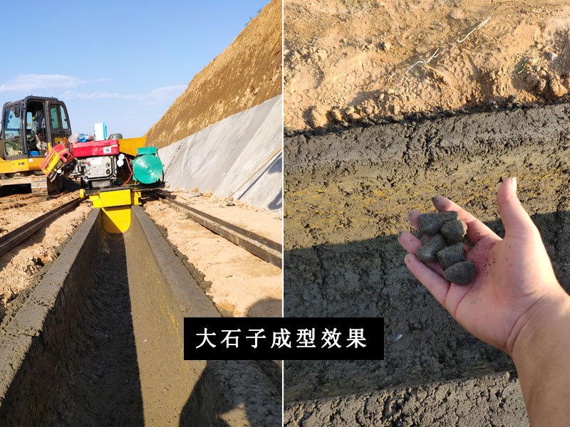 這種原材料的選擇很適合水渠成型機的,在水分控制良好的情況下。混凝土脫模成型后表面光滑,幾乎無需人工收光。機器料斗下料也比較通暢。