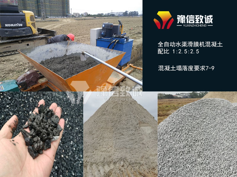 使用水渠滑模機,混凝土中水、水泥、沙子的正常比例是1:2.5:2.5。這點還是很容易滿足的,但是除了比例還要求混凝土的塌落度控制在7-9之間。7-9的混凝土幾乎是干料了,如果商混站攪拌出了塌落度小于11的混凝土,正常的混凝土罐車是倒不出來。這樣混凝土運到場地后就是十分尷尬的場景了。